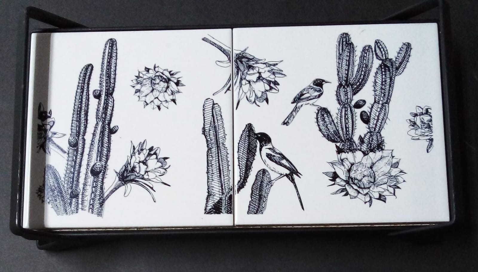 Bandeja Dupla Mandacaru Branco e Preto 31x16cm
