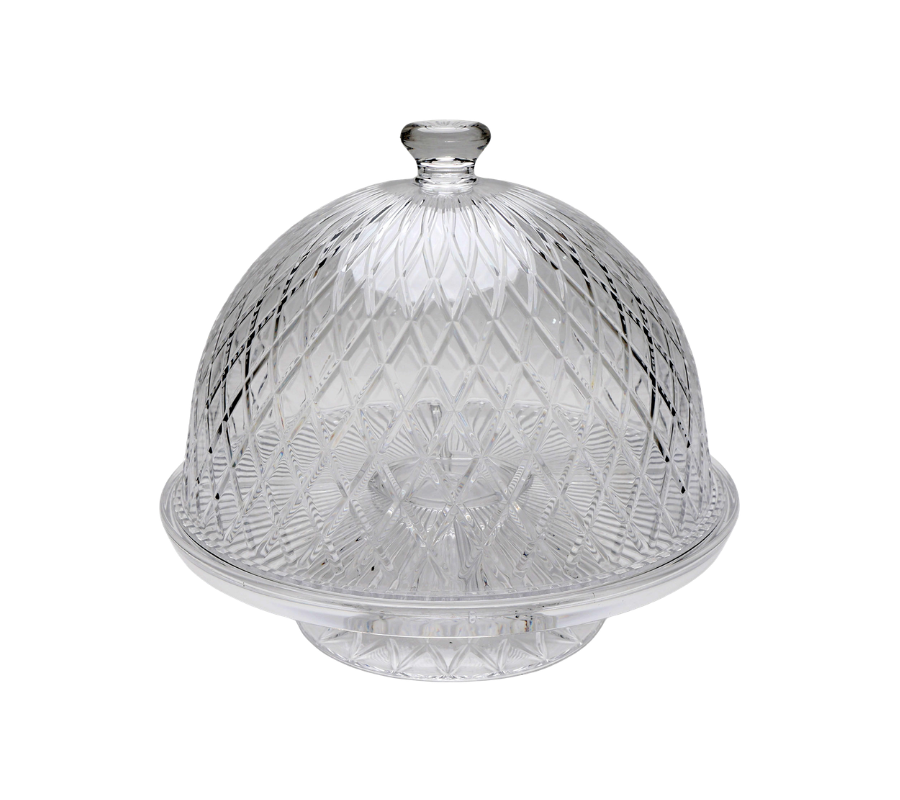 Transforme a apresentação dos seus bolos, tortas e doces com esta boleira imponente. O design lapidado em toda a cúpula e base confere um brilho sofisticado à mesa, unindo o visual clássico da cristaleira com a leveza e resistência do acrílico de alta qualidade.