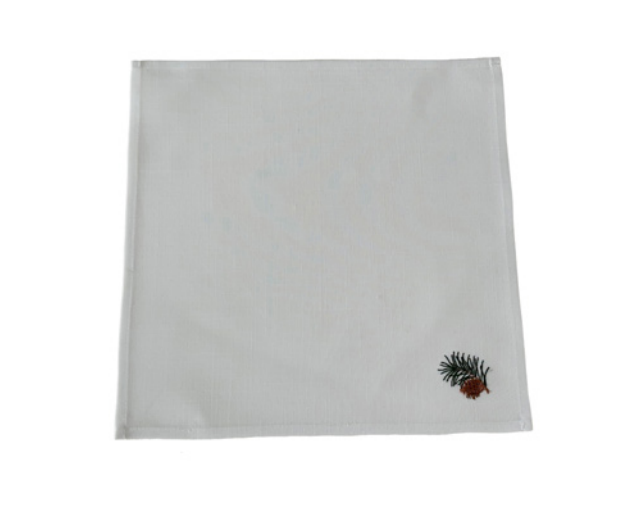 Conjunto De 4 Peças De Guardanapo Bordado Com Pinha Branco 40x40cm