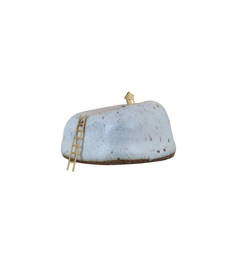 Escultura De Cerâmica Com Detalhe Mundinho Morada 7x5x4cm