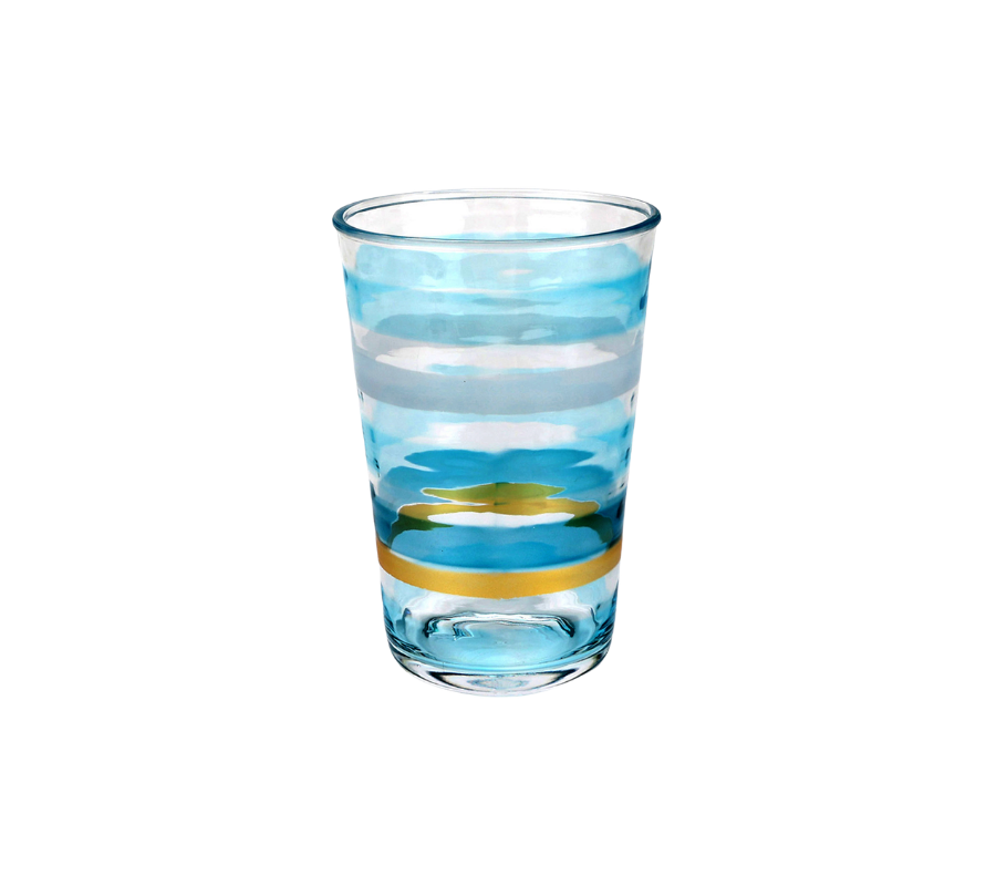 Jogo De 6 Copos Em Acrílico com Detalhe Degradê Transparente Azul e Dourado 590ml