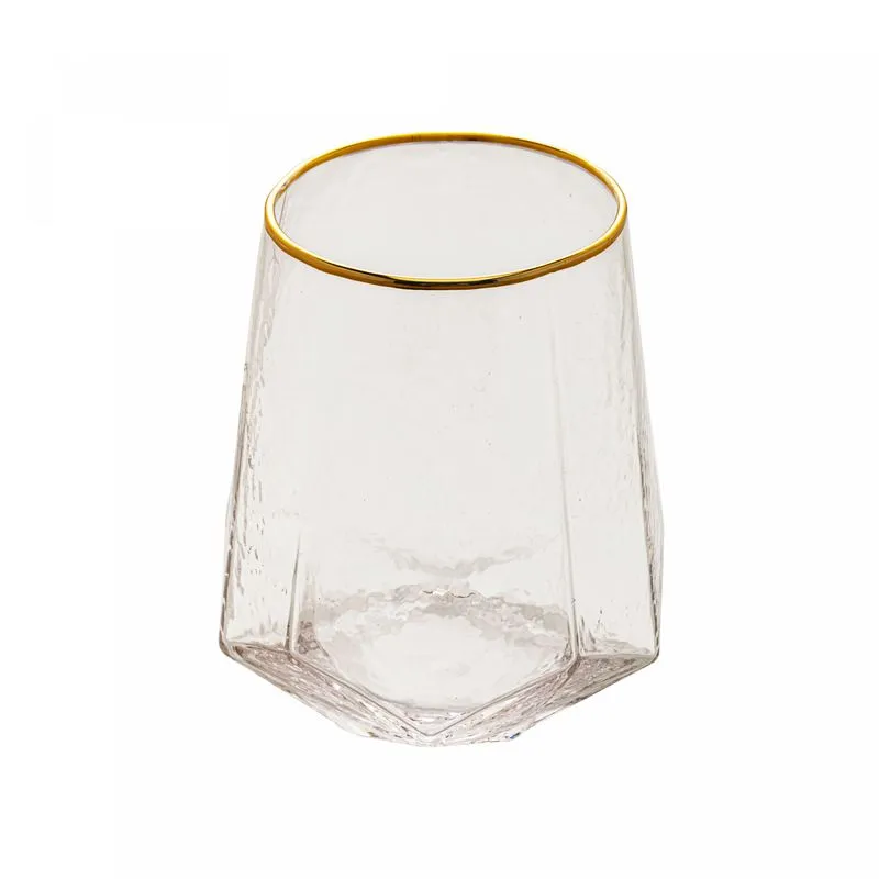 Jogo De 6 Peças De Copos Em Cristal Baixos Com Borda Dourada Taj 550ml